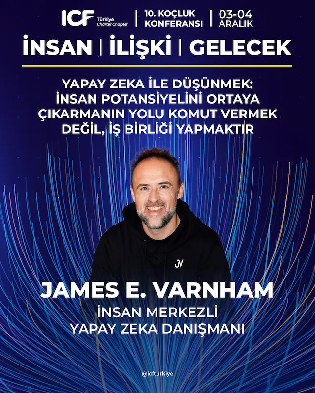 | 15:55-16:25 | James E. Varnham Yapay Zeka ile Düşünmek: İnsan Potansiyelini ortaya çıkarmanın yolu komut vermek değil, iş birliği yapmaktır. |
