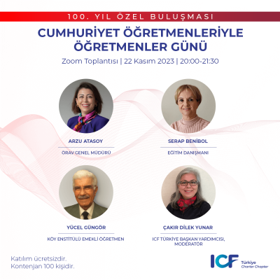 Cumhuriyetin 100.Yılında Öğretmenler Gününü değerli öğretmenlerimiz ile birlikte kutluyoruz. Engin deneyimleri ve vizyonları ile konuklarımız, bugünümüze ve yarınlarımıza ışık tutacaklar. Deneyim ve ilham dolu bu buluşmaya merakınız ve dilerseniz sorularınız ile siz de katılabilirsiniz. Bekliyoruz.