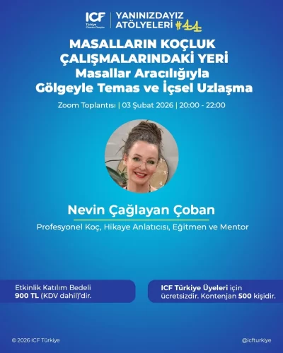 semboller, metaforlar ve anlatı üzerinden içsel kaynaklara ulaşmayı, ifade alanını genişletmeyi ve dönüşümü desteklemeyi ele alacağız ve gölgelerimizle yüzleşmenin, onun korkulacak bir şey değil de uzlaşılacak bir şey olduğunu fark edeceğiz. 🔗 Katılım için kayıt formuna profilde bulunan link üzerinden ulaşabilirsiniz. Etkinliğimiz ICF Türkiye üyelerine ücretsiz, üye olmayanlara KDV dahil 900TL’dir.
